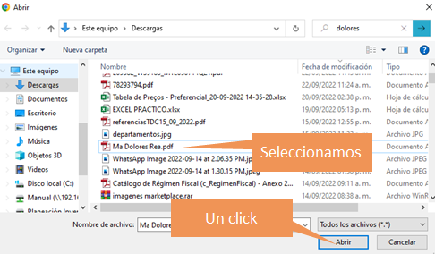 9. Seleccionamos la carpeta Desktop y en tipo de archivo .pdf para que nos muestre todos los documentos.