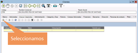 2. Seleccionar Cliente, ya sea introducuiendo el código del cliente o la razón social.