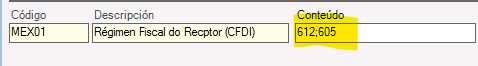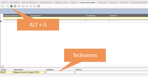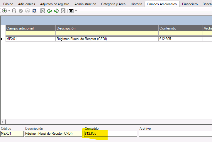 5. En el campo Contenido tecleamos el número del Régimen Fiscal del cliente.
