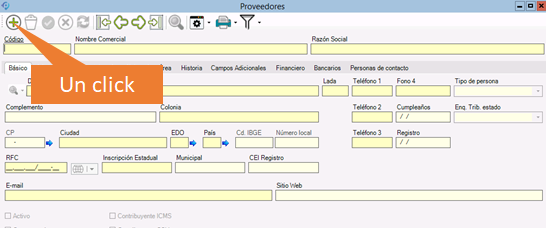2. Hacer click en el icono de " + " , el numero de proveedor se genera de manera automatica