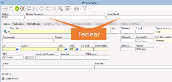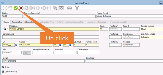 6. Dar click en la palomita verde o ALT + G para guardar el proveedor.