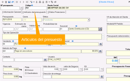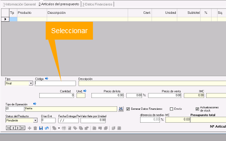 1. Ingresar a la pestaña 2-Artículos del Presupuesto.