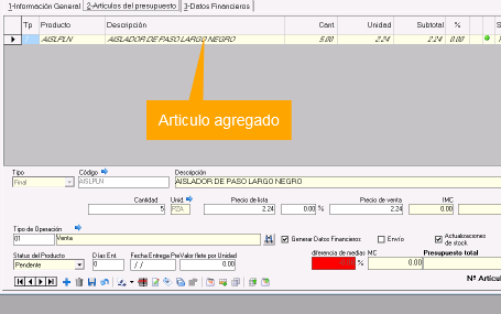 6. Repetir este paso para cada artículo que se quiere agregar a la venta.