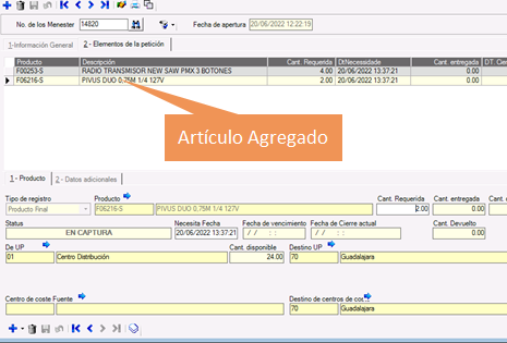 8. Repetir este paso para cada artículo que se va a ingresar.