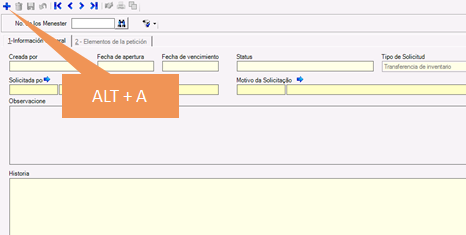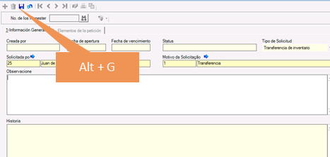 5. Usar el comando ALT + G, o bien click en Guardar. Esta acción automáticamente nos llevará a la pestaña 2-Elementos de la petición.