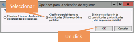 2. Seleccionamos la segunda opción Clasificar parcialidades no clasificadas para clasificar las parcelas y hacer click en OK