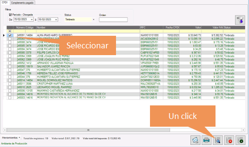 4. Seleccionar 'Status' como 'Todos'. y hacer click en Filtro. Se debe tomar en cuenta que, si se cambia el valor de este campo, al timbrar el CFDi seleccionado, este desaparecerá de la vista.