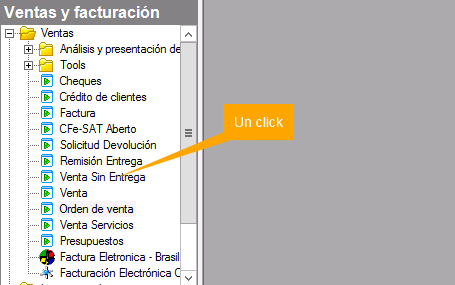 1. Ingresar a MÓDULO DE VENTAS > VENTAS Y FACTURACIÓN > VENTAS > VENTA SIN ENTREGA, y hacer un click en el módulo.