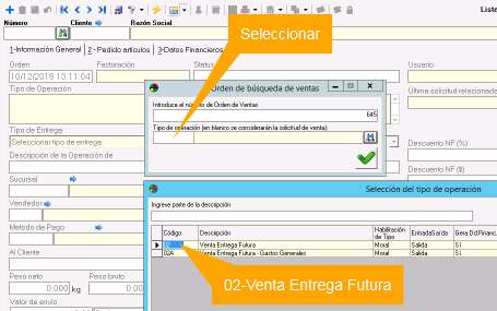4. Seleccionar el tipo de operación como: 02-Venta Entrega Futura.