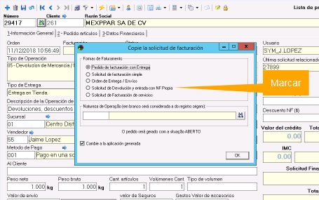 3. Marcar Solicitud de Devolución y entrada con NF Propia.