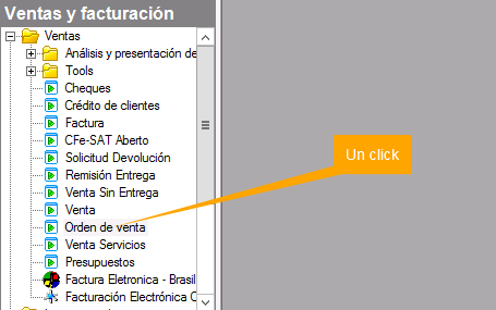 1. Ingresar a MÓDULO DE VENTAS > VENTAS Y FACTURACIÓN > VENTAS > ORDEN DE VENTA, y hacer un click en el módulo.