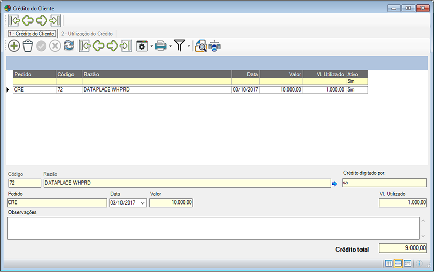 En esta pestaña se registran los importes utilizados del crédito disponible del cliente seleccionado. Según este movimiento, se actualizará el Crédito Total del cliente.