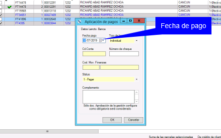 2. Indicar Fecha pago como la fecha en la que se registró el pago (cuando se recibio el dinero por parte del cliente).