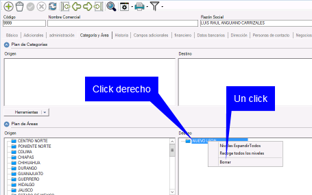 3. Ubicar y arrastrar el elemento de la lista Origen que corresponde al área del cliente, hacia la lista Destino.