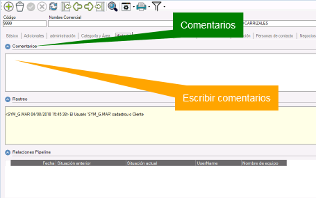 Al establecer comentarios en el registro del cliente, los mismos apareceran en los documentos en donde del cliente, esta característica debe ser usada en el caso de que se requiera informar a quienes realizan una venta sobre negociaciones con este Cliente.
