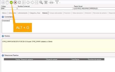 3. Usar el comando ALT+G, o bien click en Guardar.