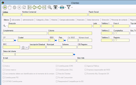 Nota: Desde otra pantalla de Mantenimiento ubicar y hacer un click en el icono Mantenimiento Cliente. Este icono, se puede encontrar en la mayoría de las pantallas de Mantenimiento (Presupuesto, Orden de Venta, Pedido, etc.) el campo Cliente, si encuentra este icono, al dar click en él, aparecerá la pantalla de Mantenimiento vacía, de otro modo, aparecerá el registro del cliente.