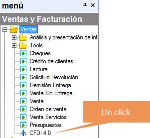 1. Ingresar a MÓDULO DE VENTAS > VENTAS Y FACTURACIÓN > VENTAS > CFDI 4.0, y hacer un click en el módulo.