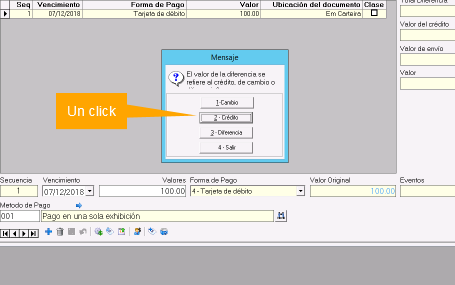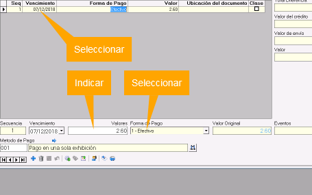 Seleccionar el lanzamiento e indicar en Valores, el importe total que está recibiendo por parte del cliente y seleccionar la Forma de pago correspondiente.