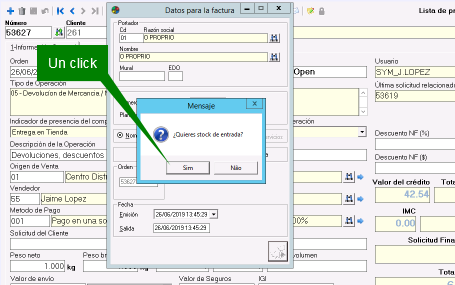 8. Hacer un click en Sí, para generar la entrada de mercancía.