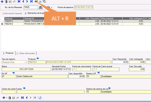 1. Usar el comando ALT + R, generar y cerrar la transferencia. Para saber si esta cerrada, debe aparecer un tache sobre las manitas.