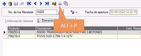 2. Usar el comando ALT + P, o bien click en Impresora.