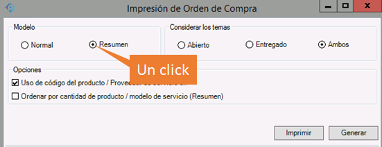 2. Seleccionar la opción de Resumen y dar click en Generar