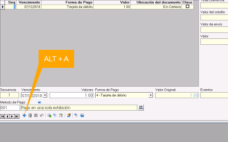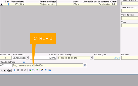 Indicar Valores y Forma de pago para el nuevo lanzamiento. el sistema automáticamente carga el importe que queda pendiente, se puede modificar por uno menor, si se requiere capturar más formas de pago.