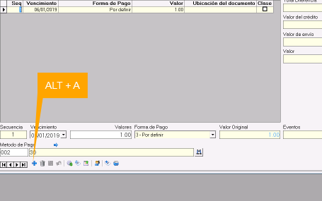 Usar el comando ALT + A, o bien click en Nuevo. el sistema automáticamente carga el importe que queda pendiente, se puede modificar a uno menor, si hay más parcialidades.