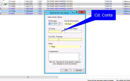 3. Indicar Cd. Conta es el código del centro de costos o sucursal.